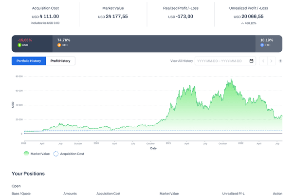 Administrate your transactions in separate portfolios or groups. Gradually recording your transactions will make it easier for you to provide the necessary documentation if requested. In addition, get an informative view by analyzing the profits and losses of your business and trading, and compare yourself to the market benchmark.